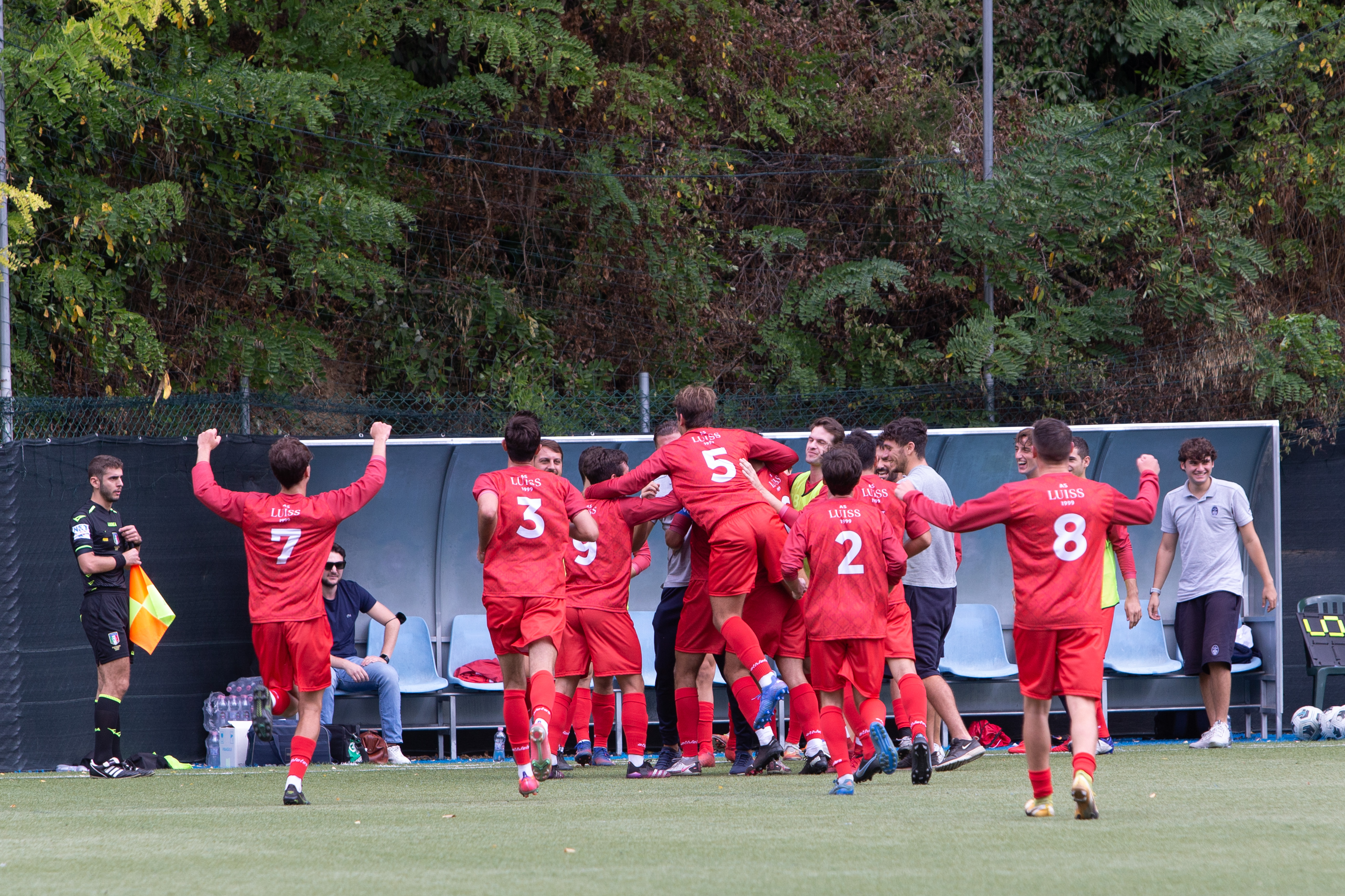 Once again Andrea De Vincenzi, who scored 7 goals in the season and 102 in the Luiss jersey. The first goal comes from a free kick from the edge of the penalty area, while the second comes from a corner kick. Two specialties of the house.